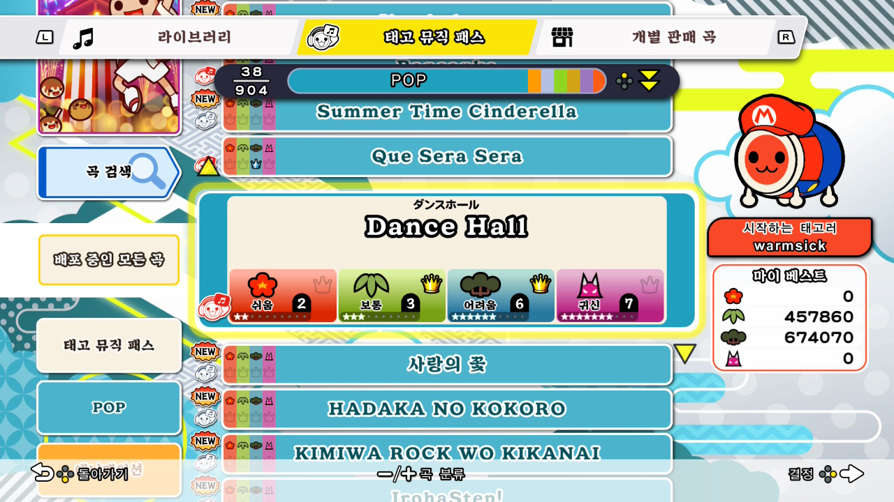 '태고의 달인'은 뮤직 패스를 결제하면 일정 기간 동안 900곡이 넘는 곡을 플레이할 수 있습니다. 이처럼 방대한 곡 목록 속에서 제가 한 번쯤 들어 본 적 있는 곡을 발견하는 일 자체가 하나의 재미로 작용했습니다. 단순히 곡을 고르는 과정에서도 예상치 못한 반가움이 발생했고, “아는 곡이니 한 번 플레이해 볼까”라는 자연스러운 동기로 이어졌습니다.