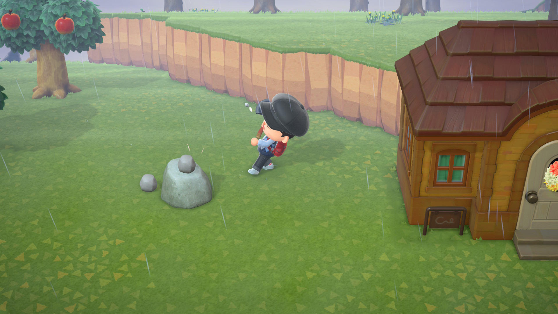 가장 기본적인 채집은 열매를 따는 일입니다. 이 단순한 행위는 생활을 위한 자원을 자연에서 얻는다는 감각을 직관적으로 전달합니다. 더 나아가 목재나 돌처럼 비교적 힘을 쓰는 자원도 채집할 수 있지만, 이 과정 역시 거칠거나 공격적인 연출보다는 부드럽고 귀여운 방식으로 표현됩니다. 예를 들어 나무를 도끼로 치더라도 나무가 쓰러지거나 파괴되는 식의 과격한 연출 대신, 재료가 가볍게 튀어나오는 식으로 처리됩니다. 즉, 이 작품은 채집의 즐거움은 유지하되, 그것을 위협적이거나 폭력적인 행위로 느끼지 않도록 세심하게 조율하고 있습니다.